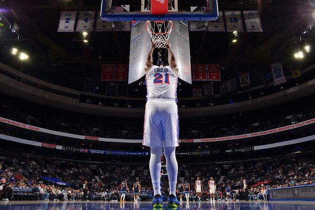 这些当然可以成为大众动摇的理由,但当恩比德站上球场的时候,他依然是那个76人最可怕的大杀器。