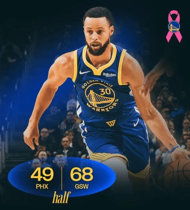 次节回来,穆迪外线连中两记三分,勇士领先18分,再次打停太阳。TJD跳步突破强起双手暴扣打成2+1,分差来到20分。古德温迎着库里上篮打进并造成犯规,勇士选择挑战最终成功改判进攻犯规,太阳真是屋漏偏逢连夜雨,雪上加霜。库里接球拉杆上篮反遭邓恩钉板大帽,随后接球超远三分强投命中,找回面子,半场战罢,勇士68-49暂时领先太阳19分。
