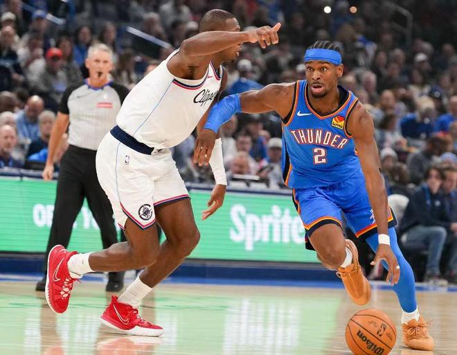 哈登本场缺阵,博格丹顶替进入首发,一开场,快船打的着实不错,科林斯、小卡火力全开,进攻端连连取分,博格丹在进攻端也有贡献!杰伦威、亚历山大为雷霆打开局面,缩小2队差距,但是快船多点开花,继续保持场上的主动,首节打完,还领先雷霆6分!可是随着轮换阵容登场,场上局势大变,桑德斯、布朗、米勒等快船替补严重进攻能力,米切尔、乔率领雷霆展开猛攻,亚历山大也是火力全开,场上沦为一边倒的局面,快船单节净输15分,半场落后了9分!